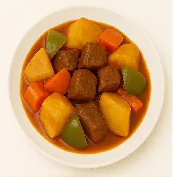 • Estofado de res con papas y pimientos en salsa de tomate