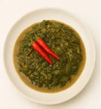Taro leaves simmered in coconut milk with chili and shrimp paste