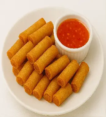 Crispy bite-sized spring rolls with seasoned chicken and vegetables